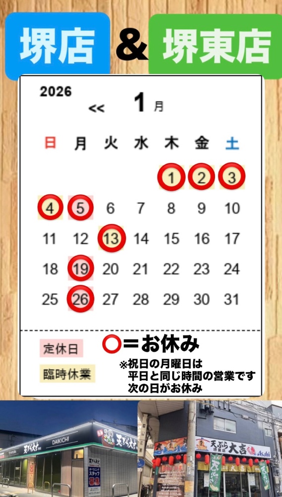 | 定休日 | 月曜日 (祝日の場合営業!!!次の日休み) |